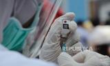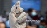 Petugas menyiapkan Vaksin Sinovac saat vaksinasi massal Covid-19 yang diikuti oleh ribuan pegawai Bank BJB, direksi Bank BJB, masyarakat dan Organisasi Perangkat Daerah (OPD), di Gedung BJB Sport, Jalan Naripan, Kota Bandung, Selasa (23/3). Vaksinasi tersebut di antaranya bertujuan mendukung pemerintah melaksanakan program vaksinasi nasional dan optimalisasi dalam memberikan pelayanan kepada masyarakat dan nasabah. (FOTO : Edi Yusuf/Republika)