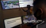 Kasat Lantas Polres Pekalongan AKP Pipit Witianingsih (kiri) menjelaskan sistem kerja layar pantau lalu lintas di Traffic Management Centre (TMC) Polres Pekalongan, Jawa Tengah, Selasa (23/3/2021). Polres Pekalongan menerapkan tilang elektronik atau Electronic Traffic Law Enforcement (ETLE) yang dilakukan serentak secara nasional dengan memasang kamera pengawas di empat titik di pusat kota dan pantura Kabupaten Pekalongan dan memasang kamera portabel yang terpasang di helm petugas polisi lalu lintas. (FOTO : Antara/Harviyan Perdana Putra)