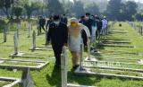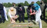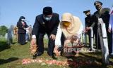 Memperingati peristiwa Bandung Lautan Api (BLA), Wali Kota Bandung Oded M Danial beserta istri menabur bunga di sejumlah makam pejuang yang gugur dalam peristiwa BLA di Taman Makam Pahlawan (TMP) Cikutra, Kota Bandung, Selasa (23/3). Dalam mengahadapi pandemi Covid-19, Oded minta warga Bandung meneladani spirit dan solidaritas seperti para pahlawan Bandung Lautan Api. (FOTO : Edi Yusuf/Republika)