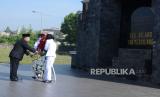 Wakil Wali Kota Bandung Yana Mulaya mengamati nisan pejuang Bandung Lautan Api (BLA) tampa nama saat ziarah ke sejumlah makam pejuang yang gugur dalam peristiwa BLA di Taman Makam Pahlawan (TMP) Cikutra, Kota Bandung, Selasa (23/3). Spirit Peritiwa Bandung Lautan Api diharapkan bisa menjadi teladan dan solidaritas warga Kota Bandung mengahadapi pandemi Covid-19. (FOTO : Edi Yusuf/Republika)