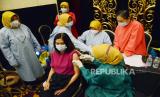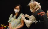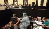 Pelaksanaan Vaksinasi Covid-19 bagi para pedagang pusat perbelanjaan dan toko swalayan (retail), di Trans Convention Center, Kota Bandung, Rabu (24/3). Vaksinasi tersebut sebagai persiapan menjelang bulan Ramadan yang dipastikan akan terjadi peningkatan aktivitas. (FOTO : Edi Yusuf/Republika)