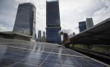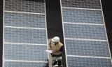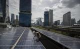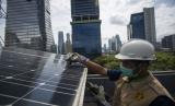 REPUBLIKA.CO.ID, JAKARTA -- Petugas merawat panel surya yang terpasang di atap Gedung Direktorat Jenderal (Dirjen) Ketenagalistrikan Kementerian Energi dan Sumber Daya Mineral (EDSM), Jakarta, Rabu (24/3/2021).