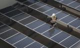 Petugas merawat panel surya yang terpasang di atap Gedung Direktorat Jenderal (Dirjen) Ketenagalistrikan Kementerian Energi dan Sumber Daya Mineral (EDSM), Jakarta, Rabu (24/3/2021). Kementerian ESDM hingga Maret 2021 telah membangun sebanyak 193 unit PLTS atap gedung, sementara sepanjang 2021-2030 pemerintah juga menargetkan pembangunan PLTS dengan kapasitas sebesar 5,432 Mega Watt untuk menurunkan emisi hingga 7,96 juta ton karbondioksida (FOTO : ANTARA/Aditya Pradana Putra)