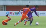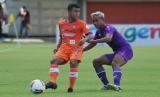 Pesepak bola Persita Tangerang Muhammad Toha (kanan) berebut bola dengan pesepak bola Persiraja Banda Aceh Defri Riski (kiri) saat pertandingan Piala Menpora di Stadion Maguwoharjo, Sleman, D.I Yogyakarta, Rabu (24/3/2021). (FOTO : ANTARA/Andreas Fitri Atmoko)