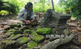 Pegiat Klaten Heritage Community (KHC) menunjukkan batu bata merah kuno yang berada di Situs Mbah Gempur, Jonggrangan, Klaten Utara, Klaten, Jawa Tengah, Rabu (24/3/2021). Menurut warga setempat sebanyak enam batu bata merah kuno dan berukir sulur atau relief floral yang berada di objek diduga cagar budaya (ODCB) tersebut dilaporkan hilang. (FOTO : Aloysius Jarot Nugroho/ANTARA )