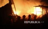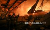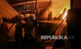 REPUBLIKA.CO.ID, TANGERANG -- Petugas berusaha memadamkan api yang membakar pabrik cat di kawasan Cikupa, Kabupaten Tangerang, Banten, Rabu (24/3/2021). Sebanyak 11 unit mobil pemadam kebakaran diturunkan untuk memadamkan kebakaran pabrik cat yang belum diketahui penyebabnya tersebut.