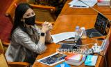 Wakil Menteri Angela Tanoesoedibjo mengikuti rapat kerja dengan Komisi X DPR di Kompleks Parlemen, Senayan, Jakarta, Kamis (25/3/2021). Rapat tersebut membahas dampak pemotongan anggaran APBN TA 2021, sebesar Rp300 miliar sesuai Raker pada 26 Januari 2021 serta membahas isu-isu strategis pariwisata dan ekraf seperti hibah pariwisata, perkembangan peraturan turunan UU Ekraf, konsep destinasi wisata terintegrasi dengan destinasi prioritas dan super prioritas. (FOTO : Antara/Galih Pradipta)