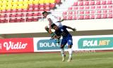 Bek PSIS Ferdyan berebut bola dengan pesepakbola Persikabo 1973 gelandang Abduh Lestaluhu saat pertandingan penyisihan grup A Piala Menpora 2021 di Stadion Manahan, Solo, Jawa Tengah, Kamis (25/3). Pada pertandingan ini PSIS berhasil membenamkan Persikabo 1973 dengan skor 3-1. (FOTO : Wihdan Hidayat / Republika)