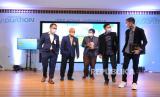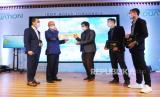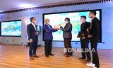 Ketua Umum Yayasan Bangun Sejahtera Mitra Umat, Suhendar, Wakil Direktur Utama 1 Bank Syariah Indonesia Ngatari , Latifriansyah – Kiwae Food, Koes Hendra & Benny Akbar – Sugeng Jaya Farm dan Bintang Wijaya – Bikin Bareng Creative (dari kiri) memberikan penghargaan kepada tiga pemenang Islamic Sociopreneur Development Program (ISDP) di Jakarta, Kamis (25/3). ISDP merupakan program beasiswa inkubator bisnis Bank Syariah Indonesia untuk mencetak generasi milenial sebagai sociopreneur muslim yang cakap berwirausaha, memiliki kepedulian sosial yang tinggi, dan berdaya guna di masyarakat. (FOTO : Tahta Aidilla/Republika)