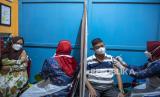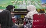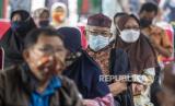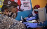 REPUBLIKA.CO.ID, PALEMBANG -- Sejumlah jemaah calon haji embarkasi Kota Palembang mengikuti vaksinasi COVID-19 dosis pertama di Puskesmas Merdeka, Palembang, Sumatera Selatan, Kamis (25/3).