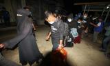 Pengungsi etnis Rohingya berjalan menuju bus saat akan diberangkatkan dari tempat penampungan Balai Latihan Kerja (BLK) Desa Meunasah Mee Kandang, Muara Dua, Lhokseumawe, Aceh, Kamis (25/2/2021) malam. Sebanyak 36 dari 92 sisa pengungsi Rohingya dipindahkan ke Medan, Sumatera Utara untuk mengikuti program penanganan pengungsi lintas negara oleh Internasional Organizational for Migration (IOM). (FOTO : ANTARA/Rahmad)