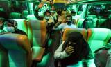 Pengungsi etnis Rohingya bersiap menuju bus saat akan diberangkatkan dari tempat penampungan Balai Latihan Kerja (BLK) Desa Meunasah Mee Kandang, Muara Dua, Lhokseumawe, Aceh, Kamis (25/2/2021) malam. Sebanyak 36 dari 92 sisa pengungsi Rohingya dipindahkan ke Medan, Sumatera Utara untuk mengikuti program penanganan pengungsi lintas negara oleh Internasional Organizational for Migration (IOM). (FOTO : ANTARA/Rahmad)