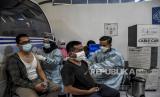 REPUBLIKA.CO.ID, BANDUNG -- Sejumlah pekerja media menjalani tahap observasi usai disuntik vaksin Covid-19 di Gedung Bandung Planning Gallery, Jalan Aceh, Kota Bandung, Jumat (26/3).
