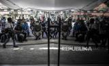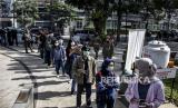 Sejumlah pekerja media menunggu giliran untuk menjalani tahap verifikasi dan pemeriksaan kesehatan sebelum disuntik vaksin Covid-19 di Gedung Bandung Planning Gallery, Jalan Aceh, Kota Bandung, Jumat (26/3). Sedikitnya 300 pekerja media menerima vaksin Covid-19 Sinovac dosis pertama pada pelaksanaan vaksinasi tahap kedua di Kota Bandung. Foto: Republika/Abdan Syakura (FOTO : REPUBLIKA/ABDAN SYAKURA)