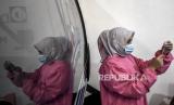 Vaksinator bersiap untuk melakukan vaksinasi di Gedung Bandung Planning Gallery, Jalan Aceh, Kota Bandung, Jumat (26/3). Sedikitnya 300 pekerja media menerima vaksin Covid-19 Sinovac dosis pertama pada pelaksanaan vaksinasi tahap kedua di Kota Bandung. Foto: Republika/Abdan Syakura (FOTO : REPUBLIKA/ABDAN SYAKURA)