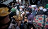 Simpatisan Habib Rizieq Shihab memadati area Pengadilan Negeri Jakarta Timur saat berlangsungnya sidang lanjutan kasus pelanggaran protokol kesehatan dengan terdakwa Habib Rizieq Shihab di Pengadilan Negeri (PN) Jakarta Timur, Jakarta, Jumat (26/3). Sidang tersebut beragendakan pembacaan nota keberatan atau eksepsi. (FOTO : Republika/Thoudy Badai)