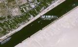 Gambar satelit dari Cnes2021, Distribution Airbus DS, menunjukkan kapal kargo MV Ever Given terjebak di Terusan Suez dekat Suez, Mesir, Kamis, 25 Maret 2021. Kapal kargo berukuran pencakar langit yang terjepit di Terusan Suez Mesir semakin membahayakan pelayaran global Kamis karena setidaknya 150 kapal lain yang perlu melewati jalur air penting menganggur menunggu penghalang untuk dibersihkan, kata pihak berwenang.