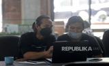 Peserta menndenganrkan masukan dari mentor saat kegiatan temu Karya Pewarta Foto Indonesia (PFI) Jakarta di Jakarta, Sabtu (17/3). Kegiatan yang diikuti oleh 9 peserta dari unsur Pewarta Foto, mahasiswa dan umum ini merupakan ajang dalam rangka mengembangkan karya foto jurnalistik melalui sesi diskusi individual antara fotografer dengan foto jurnalis, dimana para peserta berkesempatan menerima evaluasi kritis atas karya yang dihasilkan. (FOTO : Prayogi/Republika.)