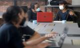 REPUBLIKA.CO.ID, JAKARTA -- Peserta mendengarkan masukan dari mentor saat kegiatan "temu Karya" Pewarta Foto Indonesia (PFI) Jakarta di Jakarta, Sabtu (17/3).