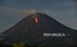 REPUBLIKA.CO.ID, SLEMAN -- Guguran lava pijar Gunung Merapi terlihat dari Turi, Sleman, D.I Yogyakarta, Minggu (28/3). Menurut data Balai Penyelidikan dan Pengembangan Teknologi Kebencanaan Geologi (BPPTKG) periode pengamatan pukul 00:00-06:00 WIB secara visual Gunung Merapi mengalami dua kali guguran lava pijar dengan jarak luncur maksimal 500 m ke arah barat daya. Hingga saat ini status Gunung Merapi Level III atau Siaga.