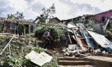 REPUBLIKA.CO.ID, BANDUNG -- Warga membersihkan puing reruntuhan bangunan pascabencana angin puting beliung di Desa Mekarsaluyu, Kecamatan Cimenyan, Kabupaten Bandung, Senin (29/3).
