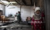 Warga berada di dalam rumahnya yang rusak pascabencana angin puting beliung di Desa Mekarsaluyu, Kecamatan Cimenyan, Kabupaten Bandung, Senin (29/3). Berdasarkan data dari Badan Penanggulangan Bencana Daerah (BPBD) Kabupaten Bandung, sebanyak 298 rumah, satu kantor desa, satu masjid, dua sekolah dan lahan pertanian di dua desa terdampak bencana angin puting beliung yang terjadi pada Ahad (28/3). (FOTO : REPUBLIKA/ABDAN SYAKURA)