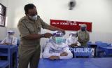 Siswa SMP Negeri 26 Solo mengikuti uji coba Pembelajaran Tatap Muka (PTM) dengan menerapkan protokol kesehatan COVID-19 di Solo, Jawa Tengah, Senin (29/3/2021). Pemerintah Kota Solo memberlakukan uji coba Pembelajaran Tatap Muka (PTM) jenjang SMP yang diikuti sebanyak 25 sekolah dengan menerapkan protokol kesehatan ketat dan pembatasan jumlah siswa serta jam masuk sekolah. (FOTO : ANTARA/Maulana Surya)