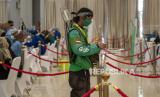 Sejumlah pekerja sektor transportasi dan Lansia antre mengikuti vaksinasi COVID-19 dosis pertama di Dinning Hall, Jakabaring Sport City (JSC), Palembang, Sumatera Selatan, Senin (29/3/2021). Kementerian Kesehatan bekerja sama dengan Grab dan Good Doctor menggelar Grab Vaccine Center secara gratis yang diperuntukkan bagi warga lanjut usia (lansia), pekerja sektor publik di bidang transportasi di Palembang. (FOTO : ANTARA/Nova Wahyudi)