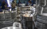 REPUBLIKA.CO.ID, CIAMIS -- Pekerja membuat wajan di Sentral Industri Wajan, Dusun Jetak, Desa Sindangsari, Kabupaten Ciamis, Jawa Barat, Senin (29/3). Sentra iindustri di kawasan tersebut sudah berbahan bakar alternatif terbarukan ramah lingkungan yakni menggunakan pelet kayu atau Bionergy dari sebelumnya memakai oli bekas, dengan kapasitas produksi 1.500 wajan per hari dari satu ton limbah yang dibeli dari pengepul rongsok.