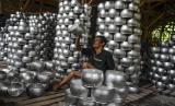 Pekerja membuat wajan di Sentral Industri Wajan, Dusun Jetak, Desa Sindangsari, Kabupaten Ciamis, Jawa Barat, Senin (29/3/2021). Sentra iindustri di kawasan tersebut sudah berbahan bakar alternatif terbarukan ramah lingkungan yakni menggunakan pelet kayu atau Bionergy dari sebelumnya memakai oli bekas, dengan kapasitas produksi 1.500 wajan per hari dari satu ton limbah yang dibeli dari pengepul rongsok. (FOTO : ANTARA/Adeng Bustomi)