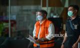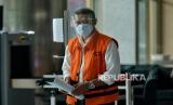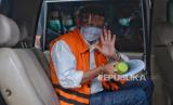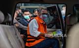 Tersangka mantan Direktur Utama PT Pelindo II (Persero) Richard Joost Lino menaiki mobil tahanan usai menjalani pemeriksaan di gedung Merah Putih KPK, Jakarta, Senin (29/3). RJ Lino diperiksa penyidik KPK sebagai tersangka atas kasus dugaan tindak pidana korupsi dalam pengadaan tiga unit Quay Container Crane (QCC) di PT Pelindo II. (FOTO : Republika/Thoudy Badai)