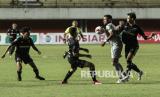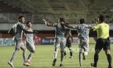 Pesepak bola Persib Bandung Ezra Walian (tengah) melakukan selebrasi usai mencetak gol melawan Persita Tangerang saat pertandingan Piala Menpora di Stadion Maguwoharjo, Sleman, DI Yogyakarta, Senin (29/3/2021). Persib Bandung memenangi pertandingan melawan Persita Tangerang dengan skor 3-1. (FOTO : ANTARA/Hendra Nurdiyansyah)