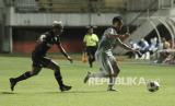 Pesepak bola Persib Bandung Zalnando (kanan) berebut bola dengan pesepak bola Persita Tangerang Muhammad Toha (kiri) saat pertandingan Piala Menpora di Stadion Maguwoharjp, Sleman, DI Yogyakarta, Senin (29/3/2021). (FOTO : Antara/Hendra Nurdiyansyah)