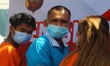 Tiga dari empat pelaku tindak pidana narkotika digiring petugas usai pemusnahan barang bukti di Mapolresta Pontianak, Kalimantan Barat, Selasa (30/3/2021). Sat Narkoba Polresta Pontianak memusnahkan 1,1 kilogram sabu asal Malaysia yang disita dari tiga kurir narkotika berinisial MS, SW dan IR yang dikendalikan oleh warga binaan Lapas Kelas IIA Pontianak berinisial ACU. (FOTO : ANTARA/Jessica Helena Wuysang)