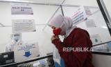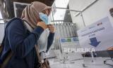 REPUBLIKA.CO.ID, Calon penumpang Kereta Api meniup kantong plastik saat mengikuti tes deteksi COVID-19 dengan metode GeNose C19 di Stasiun Kota Kediri, Jawa Timur, Selasa (30/3).