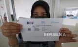 Calon penumpang Kereta Api menunjukan hasil tes deteksi COVID-19 dengan metode GeNose C19 di Stasiun Kota Kediri, Jawa Timur, Selasa (30/3). PT Kereta Api Indonesia Daop 7 memperluas layanan GeNose C-19 di lima wilayah meliputi Stasiun Kediri, Nganjuk, Blitar, Tulungagung dan Kertosono sebagai upaya mencegah penyebaran COVID-19.  (FOTO : ANTARA/Prasetia Fauzani)