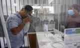 Calon penumpang Kereta Api meniup kantong plastik saat mengikuti tes deteksi COVID-19 dengan metode GeNose C19 di Stasiun Kota Kediri, Jawa Timur, Selasa (30/3). PT Kereta Api Indonesia Daop 7 memperluas layanan GeNose C-19 di lima wilayah meliputi Stasiun Kediri, Nganjuk, Blitar, Tulungagung dan Kertosono sebagai upaya mencegah penyebaran COVID-19.  (FOTO : ANTARA/Prasetia Fauzani)