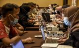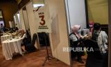 Sejumlah pekerja mal menjalani tahap verifikasi dan pemeriksaan kesehatan sebelum disuntik vaksin Covid-19 di Hotel Aryaduta, Jalan Sumatera, Kota Bandung, Rabu (31/3). Menteri Kesehatan Budi Gunadi Sadikin mengungkapkan perkembangan program vaksinasi nasional saat ini telah mencapai angka 10 juta dosis vaksin. Indonesia berhasil menjadi salah satu dari empat negara terbanyak dalam memberikan vaksin di luar negara produksi vaksin. (FOTO : REPUBLIKA/ABDAN SYAKURA)