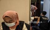 Vaksinator bersiap melakukan vaksinasi di Hotel Aryaduta, Jalan Sumatera, Kota Bandung, Rabu (31/3). Menteri Kesehatan Budi Gunadi Sadikin mengungkapkan perkembangan program vaksinasi nasional saat ini telah mencapai angka 10 juta dosis vaksin. Indonesia berhasil menjadi salah satu dari empat negara terbanyak dalam memberikan vaksin di luar negara produksi vaksin. (FOTO : REPUBLIKA/ABDAN SYAKURA)