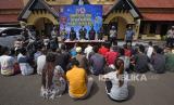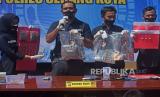 REPUBLIKA.CO.ID, SERANG -- Petugas menunjukkan barang bukti sejumlah paket sabu serta para tersangka jaringan sindikat pengedar narkoba saat ekspos di Mapolres Serang, Banten, Rabu (31/3/2021). Jajaran Polres Serang menangkap 51 sindikat narkoba terdiri dari 45 orang pengedar, 1 orang pembuat tembakau gorila, 5 orang pemakai serta menyita 45 gram sabu, 1 kg tembakau gorila serta 4.900 butir pil tramadol.