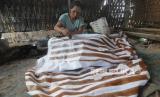Perajin menyelesaikan pembuatan batik di Desa Klampar, Pamekasan, Jawa Timur, Rabu (31/3/2021). Puteri Indonesia 2020, RR Ayu Maulida Putri akan mengenakan produk unggulan batik Pamekasan yaitu (FOTO : ANTARA/Saiful Bahri)