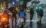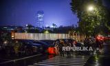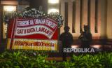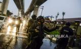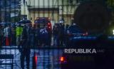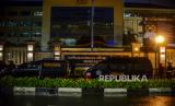 REPUBLIKA.CO.ID, JAKARTA -- Sejumlah anggota kepolisian berjaga pascapenembakan terduga teroris di kawasan Gedung Mabes Polri, Jakarta, Rabu (31/3).