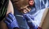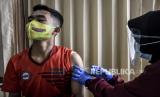 REPUBLIKA.CO.ID, BANDUNG -- Vaksinator menyuntikan vaksin Covid-19 Astrazeneca ke anggota TNI di Perawatan Umum Lanud Husein Sastranegara, Kota Bandung, Kamis (1/4).