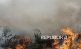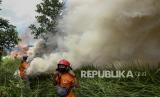 REPUBLIKA.CO.ID, PEKANBARU -- Satgas Kebakaran Hutan dan Lahan (Karhutla) Riau yang terdiri dari petugas Manggala Agni Daops Pekanbaru, BPBD Pekanbaru, Masyarakat Peduli Api dan TNI Polri berusaha memadamkan api yang membakar lahan ketika terjadi kebakaran lahan di Pekanbaru, Riau, Jumat (2/4).