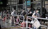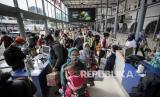 REPUBLIKA.CO.ID, Calon penumpang antre untuk memasuki Stasiun Pasar Senen di Jakarta, Jumat (2/4/2021). Kepala Humas PT KAI DAOP 1 Eva Chaerunissa mengatakan hingga siang ini penumpang yang meninggalkan Jakarta dengan kereta api jarak jauh pada libur Paskah di Stasiun Pasar Senen mencapai 4.600 orang.