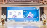 Menteri Koperasi dan Usaha Kecil Menengah Teten Masduki (kiri) bersama Gubernur Jawa Barat Ridwan Kamil (kanan) yang juga disaksikan secara virtual Menteri Koordinator Bidang Kemaritiman dan Investasi Luhut Binsar Pandjaitan (kedua kiri) dan Gubernur Bank Indonesia Perry Warjiyo (kedua kiri) membuka secara resmi kampanye Gerakan Indonesia Bersama UMKM dan ajang Gernas Bangga Buatan Indonesia di Bandung, Jawa Barat, Sabtu (3/4/2021). Kampanye Gernas Bangga Buatan Indonesia (BBI) yang berlangsung pada bulan April 2021 di Jawa Barat ini mengangkat tema UKM Jabar Paten. (FOTO : Antara/M Agung Rajasa)