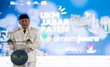 Menteri Koperasi dan Usaha Kecil Menengah Teten Masduki menyampaikan sambutan saat peresmian kampanye Gerakan Indonesia Bersama UMKM dan ajang Gernas Bangga Buatan Indonesia di Bandung, Jawa Barat, Sabtu (3/4/2021). Kampanye Gernas Bangga Buatan Indonesia (BBI) yang berlangsung pada bulan April 2021 di Jawa Barat ini mengangkat tema UKM Jabar Paten. (FOTO : Antara/M Agung Rajasa)