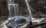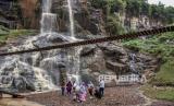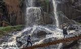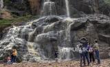 REPUBLIKA.CO.ID, BANDUNG -- Wisatawan beraktivitas di kawasan wisata Curug Batu Templek, Cisanggarung Lebak, Kabupaten Bandung, Ahad (4/4).