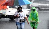 REPUBLIKA.CO.ID, YOGYAKARTA -- Ojek payung menunggu pelanggan saat hujan deras di Stasiun Yogyakarta, Ahad (4/4).