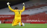 Kiper Liverpool Alisson bereaksi selama pertandingan sepak bola Liga Premier Inggris antara Arsenal FC dan Liverpool FC di London, Inggris, 3 April 2021. (FOTO : Julian Finney / POOL/GETTY POOL)